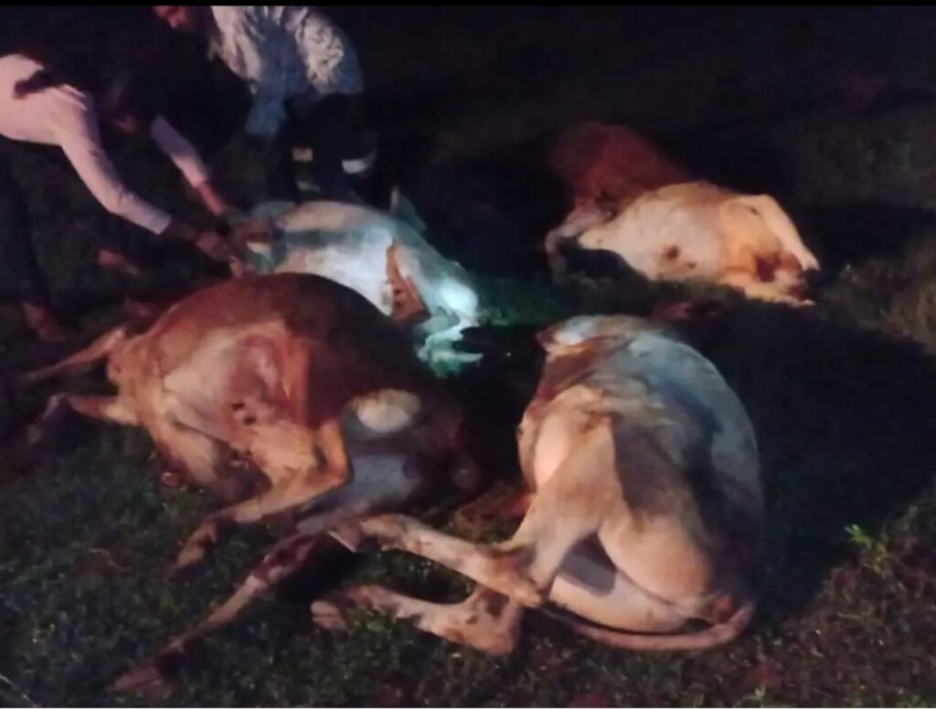 मौत हो गई तो 04 गाय गंभीर रूप से घायल हो गये.