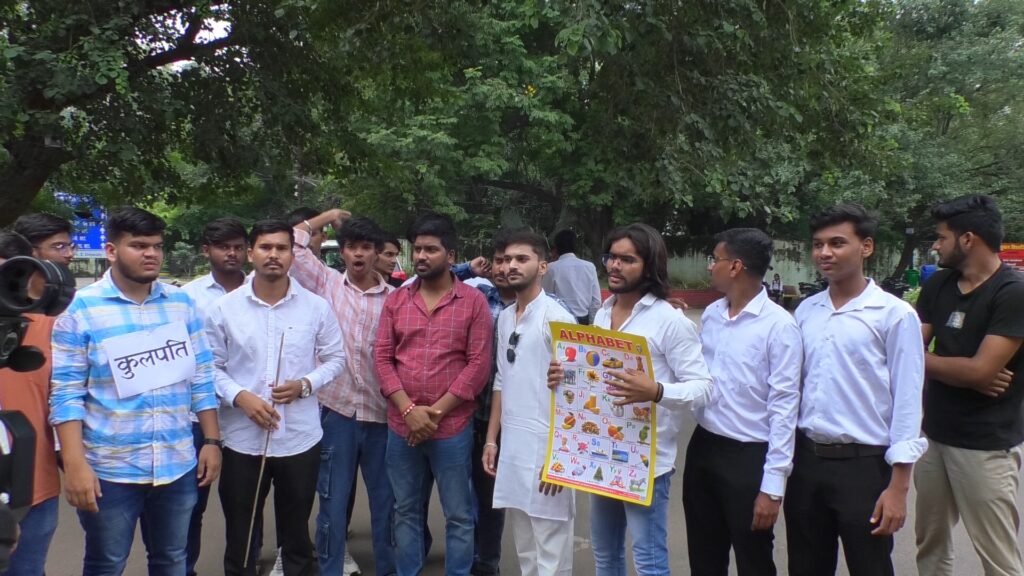 कुलपति को पढ़ाया ABCD, NSUI का अनोखा विरोध‘NAAC’ की जगह ‘NACC’, सुधार शुल्क बढ़ा तो भड़के छात्र – विश्वविद्यालय की व्यवस्था पर सवाल