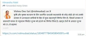 Agriculture and Farmers Welfare :  मुख्यमंत्री विष्णुदेव साय ने एक्स पर किया ट्वीट
