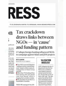 Ambikapur Breaking : अंबिकापुर ! पिछले दिनों राष्ट्रीय दैनिक अखबार इंडियन एक्सप्रेस में छपे गैर सरकारी संगठनों के विदेशी फंडिंग पर आईटी विभाग की गंभीर रिपोर्ट को लेकर भाजपा सरगुजा जिला संवाद प्रमुख संतोष दास ने अपनी तीखी प्रतिक्रिया व्यक्त की है। उन्होंने अपने जारी बयान में कहा है कि आईटी की रिपोर्ट से ‘हसदेव बचाओ’ के नाम पर विदेशी फंडिंग से फर्जी आंदोलन चला रहे रायपुर के कथित एनजीओ बेनकाब हो गए हैं।
