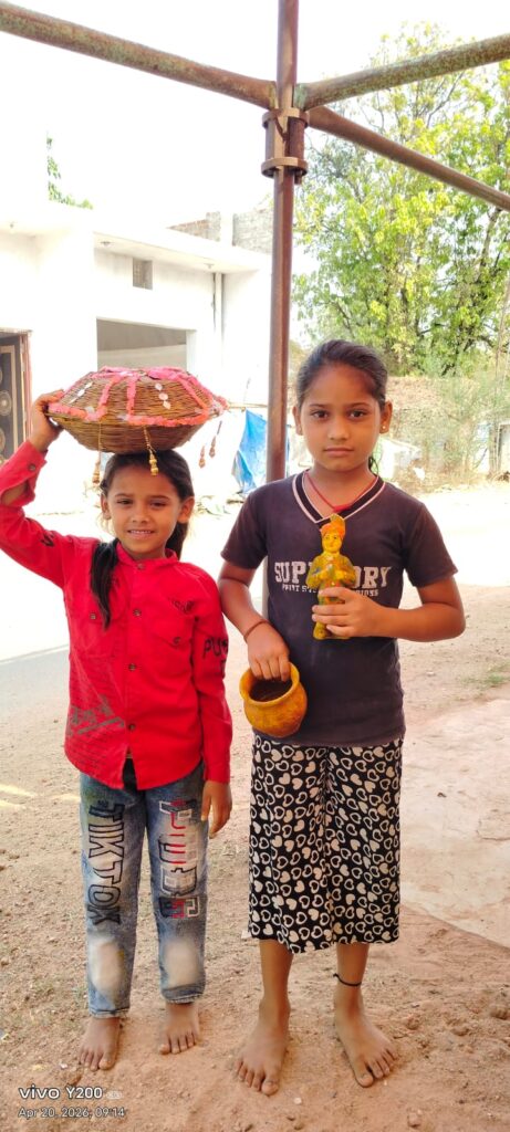 पुतरा पुतरी का तेल रस्म निभाई द्वितीय दिवस मायन नाच कर तृतीय दिवस अक्षय तृतीया के दिन पूरे विधि विधान से बारात स्वागत और बेटी विदाई किये इस अवसर पर गाँव में ग्रामीण बच्चों के इस विवाह समारोह शामिल होकर बच्चों की प्रशंसा कर रहे हैं कहते है अक्ति पर्व पर बच्चों द्वारा इस तरह से पुतरा पुतरी का विवाह रचाया जाता है एक मोहल्ला लड़की पक्ष और दूसरा मोहल्ला लड़का पक्ष की रस्म अदाएगी करते हैं। अक्षय तृतीया अक्ति पर्व विशेष पर साहित्यकार संतोष गुप्ता ने कहा कि अक्ति का पर्व वैशाख के शुक्ल पक्ष की तृतीया को मनाया जाता है इस लग्न में विवाह सहित अन्य शुभ कार्य फलदायी होता है आगे उन्होंने कहा कि अक्षय तृतीया बसंत ऋतु के समापन और ग्रीष्म ऋतु के आगमन काल है इस पर्व में शुभचिंतक अपने अपने चिर परिचितों को पानी से भरे मिट्टी के घड़े शुभकामना स्वरूप देते हैं कोई कोई शर्बत घोलकर मीठे पानी भी दान करते हैं जिसका उद्देश्य होता है जीवन में हमेशा मिठास , शीतलता बनी रहे ग्रीष्म काल का आगमन होने से इस दिन तन और मन को शीतलता देने वाले खाद्य या पेय पदार्थ शक्कर , इमली , आम , चना से बने सत्तू जिसके सेवन से शरीर को फायदा हो इसका एक दूसरे को दान करते हैं । अक्षय तृतीया के दिन ही भगवान विष्णु के नर अवतार , भगवान परशुराम , ब्रम्हा पुत्र अक्षय कुमार , माँ गंगा , अन्नपूर्णा माता का जन्म दिवस भी माना जाता है इसी दिन किसान ग्राम देवता , शीतला माता आदि देवी देवताओं का स्मरण कर सुख , शांति ,समृद्धि की कामना करते अपने खेतों में अन्न छिड़कर अच्छी फसल होने की आशा करते अन्नपूर्णा माता का आशीर्वाद प्राप्त करते हैं । इन्ही विशेष कारणों से अक्षय तृतीया पर्व की महत्ता है इस दिन बच्चों द्वारा पुतरा पुतरी का विवाह रचाने का उद्देश्य बच्चों में पारिवारिक जिम्मेदारियों , रीति रिवाजों , सामाजिक जिम्मेदारियों का निर्वहन कराने जीवन जीने की कला से अवगत कराना होता है । इस अवसर पर बच्चों और ग्रामीणों द्वारा पुतरा , पुतरी विवाह का निमंत्रण कार्ड भी छपवाया गया था जिसे ग्रामीणों को बांटा गया था शाम को पार्टी याने पतरी भात ( भंडारा ) का आयोजन किया गया था जहां ग्रामीणों ने भंडारा का आनंद लिया ।