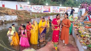 छठ घाट में दोपहर से ही छठव्रतियो एवं दर्शनार्थियो के आने का सिलसिला शुरू हुआ। घाट में इस पूजा का विशेष माहौल रहा। संध्या को पूरे विधि-विधान के साथ महिलाएॅ जल में खड़े रहकर डूबते सूर्य को अर्घ्य दिया गया। इसके अलावा छठ व्रतिये ने डूबते सूर्य व छठ माता की अराधना की। गौरतलब है कि इससे पूर्व मंगलवार को सूर्य उपासना का पर्व नहाय खाय के साथ शुरू हुआ एवं बुधवार को खरना पर्व मनाया गया। इस चार दिवसीय पर्व में पूजन सामाग्री हेतु श्रद्वालुओ की भीड़ बाजार में लगी रही। डूबते सूर्य को अर्घ्य देने में छठ घाट पर भीड़ लगी रही।
