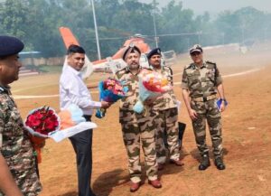 हेलीकाप्टर से केन्द्रीय विद्यालय फुटबॉल मैदान हैलीपैड पहुंचे। दंतेवाड़ा पुलिस अधीक्षक गौरव राय, सीआईएसएफ बचेली कमांडेंट पंकज महोत्रा, एनएमडीसी उपमहाप्रबंधक सौरभ कुमार द्वारा स्वागत किया गया। हैलीपड से सड़क मार्ग से एनएमडीसी के गेस्ट हाउस पहुंचने पर बचेली परियेाजना के अधिशासी निदेशक प्रभारी एवं महाप्रबंधक विघुत डीपी शेट्टी, महाप्रबंधक संयंत्र जी. गोगई कार्मिक उपमहाप्रबंधक महेश नायर, डीजीएम तिरूपत राव, सहायक महाप्रबंधक राकेश रंजन द्वारा पुष्पगुच्छ से स्वागत किया। जलपान ग्रहण कर विभागाध्यक्षो व सीआईएसएफ बचेली इकाई के अधिकारियेा के साथ बैठक लिये। खनन क्षेत्र आकाशनगर स्थित सीआईएसएफ बैरक पहुॅचे वहॉ जवानो के साथ मुलाकात की। इसके बाद वे किरंदुल के लिए चॉपर से रवाना हुए। जानकारी के अनुसार किरंदुल पहुॅचने पर परियोजना के खनन क्षेत्र में बनाए शहीद स्मारक पहुॅच शहीदो को श्रद्घांजलि दी।