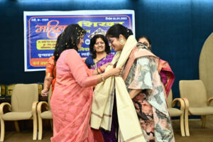 बलौदा बाजार। वर्ल्ड ब्राह्मण फेडरेशन एवं सर्व युवा ब्राह्मण परिषद के संयुक्त तत्वाधान में अंतरराष्ट्रीय महिला दिवस के अवसर पर रविवार को महिला शिखर सम्मान समारोह का आयोजन वृन्दावन हाल, रायपुर में किया गया. जिसमें विभिन्न विधाओं में विशिष्टता प्राप्त 36 विप्र महिलाओं को सम्मानित किया गया. जिसमें शिक्षा और समाज सेवा में विशिष्ट योगदान के लिए श्रद्धा मनोज दुबे को सम्मानित किया गया. इस अवसर पर शॉल, बुके एवम् स्मृति चिन्ह (स्व. श्रीमती पार्वती देवी-रविशंकर मिश्रा स्मृति) भेंट कर उन्हें सम्मानित किया गया. समारोह में नृत्य, गीत, संगीत ने समां बांधे रखा. कार्यक्रम की मुख्य अतिथि रायपुर की महापौर मीनल चौबे रहीं. वहीं विशेष अतिथि के रूप में पार्षदगण सरिता आकाश दुबे, स्वप्निल मिश्रा, सुमन अशोक पाण्डेय, शताब्दी पाण्डेय एवं अर्पिता पाठक-उप संचालक, नगरीय प्रशासन, रायपुर उपस्थित रहीं.