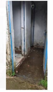 शौचालय की दीवारो की भी जर्जर स्थिति हो चूुकी है, दीवार व छत पर दरारे आ चुकी है। छत बैठ चुका है, अंदर पानी टपकता है। पानी का कनेक्शन भी नही है। अगर शौचालय का उपयोग करना भी हो तो बच्चे पहले दूर से पानी लेकर आते है।
