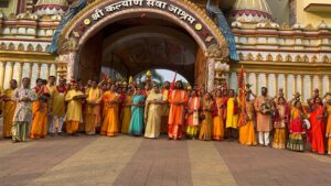 नर्मदा के उद्गम स्थल पर पूजन कर नर्मदा कुंड से वरुण पूजन एवं श्रीमद् भागवत महापुराण धारण कर राधे-राधे की जयकारा के साथ कल्याण आश्रम के भाव परिसर में कथा पंडाल में प्रथम आरती की गई.