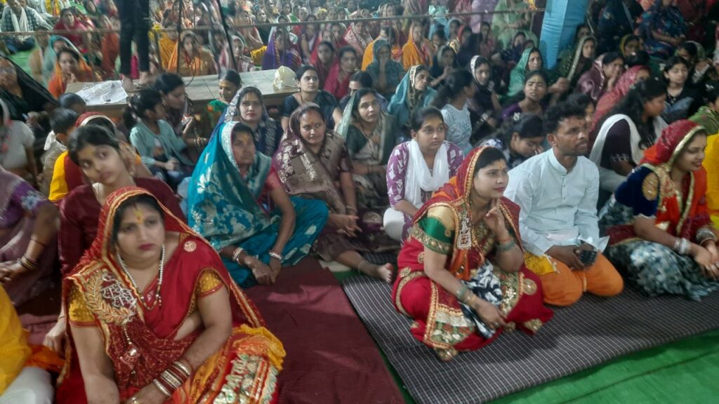नायक ने आगे कहा श्रीमद्भागवत कथा का मूल उद्देश्य और शिक्षा यही बताती है कि “चित्र नहीं चरित्र की पूजा होनी चाहिए।”भगवान का बाह्य रूप तो पूजनीय है,लेकिन उससे कहीं अधिक महत्वपूर्ण उनके आदर्शों,लीलाओं और गुणों को अपने जीवन में उतारना है।श्रीमद्भागवत भागवत कथा के माध्यम से भक्त केवल ईश्वर के रूप को नहीं बल्कि उनके आदर्श चरित्र को अपने हृदय में बसाए क्योंकि धर्म में चित्र से अधिक चरित्र की प्रधानता बताई गई है।अंत में नायक ने कहा “कथा श्रवण की सार्थकता तभी है जब हम इसके संदेशों को जीवन में उतारें और आत्मसात करें।”इस दिवस के कथा प्रसंग में भगवताचार्य देवराज मिश्रा जी ने भक्तों को भगवान श्रीकृष्ण की कथा बाललीला,56 भोग,विवाह उत्साह से जोड़ते हुए भक्ति के सागर में डुबकियाँ लगवाई तथा “माता-पिता भाई बंधु सखा वो हमारा है-कृष्ण नाम प्यारा है गोपाल नाम प्यारा है” भजन पर भक्तों को खूब थिरकाया।