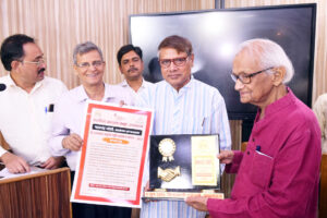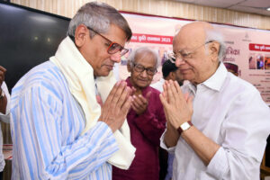 नई दिल्ली। प्रयागराज में रुद्रादित्य प्रकाशन द्वारा आयोजित सम्मान समारोह में देश के अनेक जाने-माने लेखकों का सम्मान किया गया । देश के प्रसिद्ध कहानीकार , उपन्यासकार , आलोचक ,और ‘आज की जनधारा ‘ की वार्षिकी के संपादक भालचंद्र जोशी को वर्ष 2023 का डॉ. रामस्वरूप चतुर्वेदी आलोचना सम्मान दिया गया । मलयज स्मृति आलोचना सम्मान प्रदीप सक्सेना , फणीश्वर नाथ रेणु स्मृति उपन्यास सम्मान प्रियदर्शन मालवीय , कमलेश्वर स्मृति कथा सम्मान अंजू शर्मा और स्नेहमयी चौधरी स्मृति कविता सम्मान रचना आनंद को दिया गया । इसी तरह वर्ष 2024 के लिए क्रमशः श्री प्रकाश मिश्र ,नीरज खरे , सिनीवाली शर्मा , विभा रानी और अखिलेश जायसवाल को दिया गया । इस अवसर पर रुद्रादित्य प्रकाशन द्वारा प्रकाशित पत्रिका प्रयाग संवाद के प्रथम अंक का विमोचन किया गया ।
