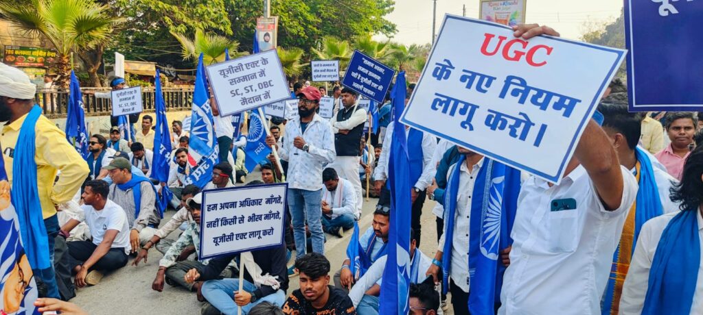 रायपुर। University Grants Commission (यूजीसी) की गाइडलाइन को लेकर एक बार फिर देशभर में हलचल तेज हो गई है। इसी कड़ी में छत्तीसगढ़ की राजधानी रायपुर में भीम आर्मी के कार्यकर्ताओं ने विरोध प्रदर्शन किया।