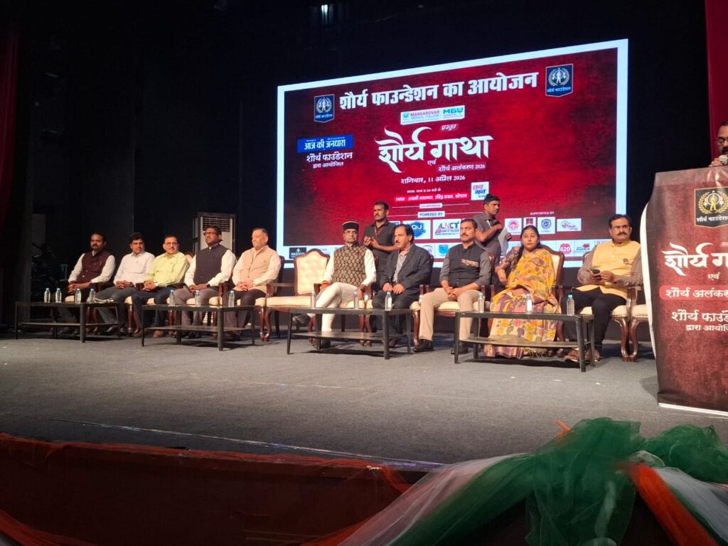 राजधानी भोपाल के रवीन्द्र भवन में शनिवार शाम शौर्य गाथा एवं शौर्य अलंकरण 2026 का गरिमामय आयोजन सफलतापूर्वक संपन्न हुआ। शौर्य फाउंडेशन और आज की जनधारा के संयुक्त तत्वावधान में आयोजित इस समारोह में वीरता, राष्ट्रभक्ति और बलिदान की गाथाएं जीवंत हो उठीं। कार्यक्रम में भारतीय सशस्त्र बलों, केंद्रीय पुलिस बलों और मध्य प्रदेश पुलिस के जांबाज जवानों को उनके अदम्य साहस के लिए शौर्य अलंकरण से सम्मानित किया गया। साथ ही, शहीदों के परिजनों को भी भावभीनी श्रद्धांजलि अर्पित की गई।