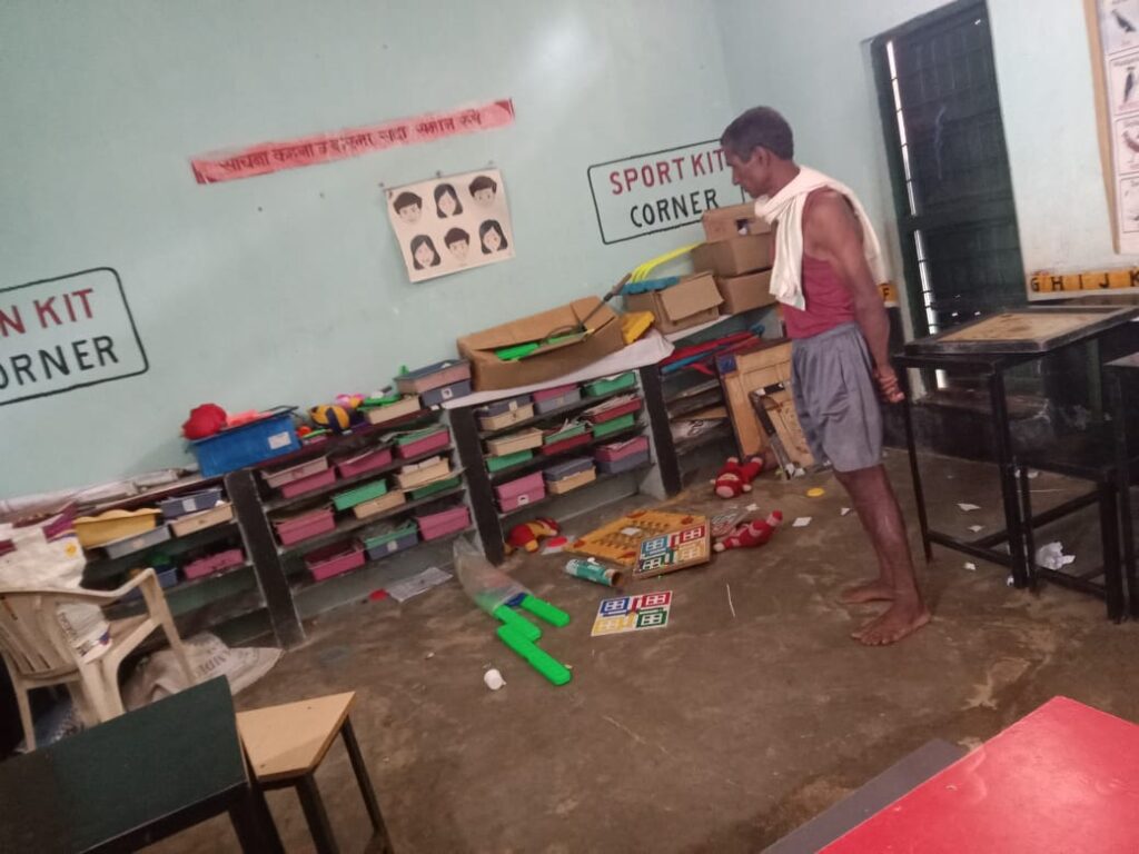 वन विभाग की टीम मौके पर पहुंचने पर ग्रामीण सहित शिक्षक और वन विभाग की टीम स्कूल के अंदर प्रवेश किया, तो भालू पीछे के दरवाजे से जंगल की ओर भाग गया, सभी जब स्कूल के अंदर प्रवेश की तो उन्होंने देखा की स्कूल के अंदर रसोई कक्ष, ऑफिस रूम सभी जगह सामान बिखरा हुआ था और भालू ने जमकर उत्पाद मचाया था।