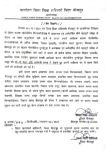 बीजापुर :-जिला शिक्षा अधिकारी बीजापुर के आकस्मिक निरीक्षण के दौरान बालक पोर्टाकेबिन चिन्नाकोड़ेपाल में अव्यवस्था एवं अर्धवार्षिक जैसे महत्वूर्ण परीक्षा के दौरान 48 छात्र अनुपस्थित पाये जाने के कारण प्रभारी अधीक्षक बालक पोर्टाकेबिन चिन्नाकोड़ेपाल श्री अमित कोरसा, शिक्षक एल०बी० माध्यमिक शाला तुमनार, को एवं बालक पोर्टाकेबिन दुगईगुड़ा में अव्यवस्था एवं अर्धवार्षिक जैसे महत्वूर्ण परीक्षा के दौरान 18 छात्र अनुपस्थित पाये जाने के कारण श्री ककेम मारैया सहायक शिक्षक एल०बी०, प्राथमिक शाला एर्राबोर, पुसबाका प्रभारी अधीक्षक बालक पोर्टाकेबिन दुगईगुड़ा की दो-दो वेतन वृद्धि असंचयी प्रभाव से रोकते हुए प्रभारी अधीक्षक पद से पृथक किये जाने की कार्यवाही की गई।