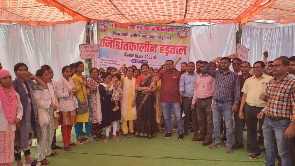 छत्तीसगढ़ में राष्ट्रीय स्वास्थ्य मिशन (NHM) संविदा कर्मचारी संघ पिछले 3 दिनों से नियमितीकरण और संविलियन सहित 10 सूत्रीय मांगों को लेकर अनिश्चितकालीन हड़ताल पर बैठा है। बलौदाबाजार में आज आंदोलन के तीसरे दिन बड़ा विवाद उस समय खड़ा हो गया, जब कर्मचारी “संविदा कुप्रथा” का पुतला दहन करने पहुंचे।