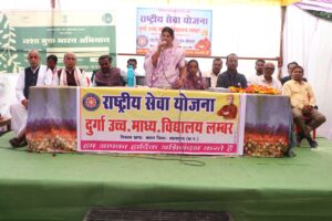सरायपाली :- दुर्गा उच्चतर माध्यमिक विद्यालय लम्बर की राष्ट्रीय सेवा योजना इकाई द्वारा ग्राम भौंरादादर में जिला संगठक डॉ मालती तिवारी के दिशानिर्देशन, प्राचार्य एवं सिविर संयोजक जी पी पटेल के मार्गदर्शन में एवं आर के पटेल कार्यक्रम अधिकारी के नेतृत्व में सात दिवसीय शिविर का आयोजन किया गया। शिविर का शुभारंभ लोहरीनडीपा सरपंच घसिया सिदार के मुख्य आतिथ्य में एवं प्राचार्य जीपी पटेल की अध्यक्षता में हुआ। वहीं समापन समारोह के मुख्य अतिथि बसना जनपद पंचायत अध्यक्ष श्रीमती रूक्मणी सुभाष पटेल थीं। एवं विशिष्ट अतिथि के रूप में दुर्गा शिक्षण सेवा समिति लंबर के अध्यक्ष जी एस तोमर, श्रीमती लक्ष्मी गणेश बरिहा, आर आर पटेल, श्यामसुन्दर चौधरी, जयराम पटेल, यू एस पटेल, दुखीश्याम, ईश्वर पटेल, देवनाथ. पटेल, प्रहलाद पटेल, उग्रसेन चौधरी, एस एल पटेल उपस्थित थे।