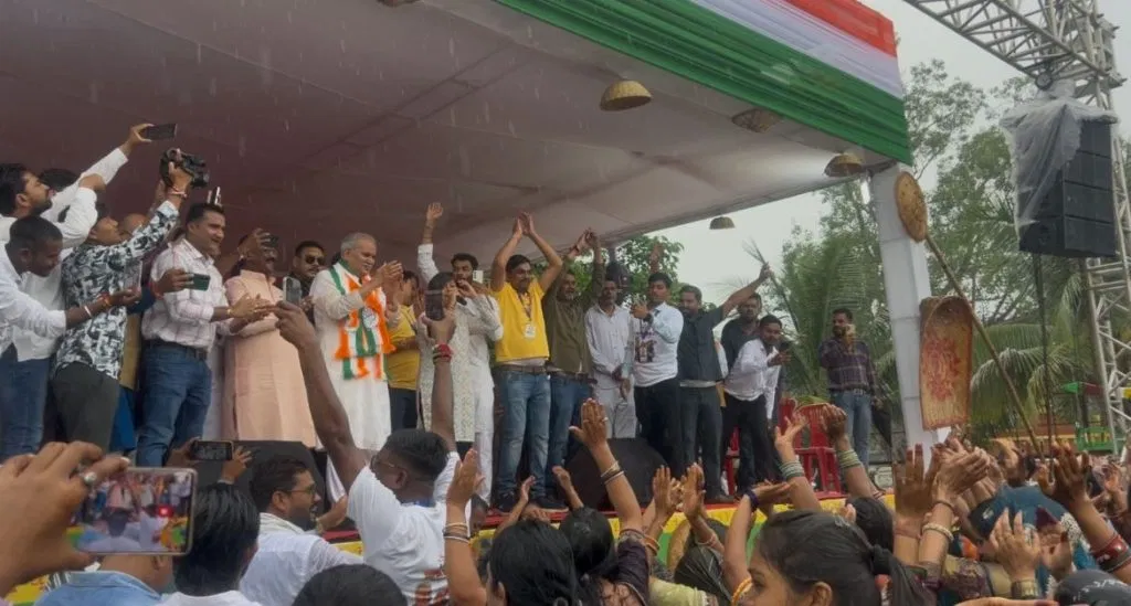 भारी बारिश के बावजूद कार्यकर्ताओं का उत्साह और छत्तीसगढ़ी गीतों पर उनका नृत्य कार्यक्रम की खास झलक रहा।