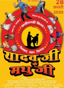 रायपुर। नाम थोड़ा अजीब सा है पर फि़ल्म लाजवाब है यादव जी के मधु जी। राज्य स्थापना के साथ विकास की ओर अग्रसर हुई छत्तीसगढ़ फि़ल्म इंडस्ट्री में यह फिल्म एक नया स्वाद, नई ताजगी और नये विषय के साथ आई है। फिल्म से जुड़े लोगों , मीडिया के लिए आज नवा रायपुर के मिराज सिनेमा में फिल्म का विशेष शो रखा गया। बिलासपुर के हमारे पुराने रंगकर्मि साथी सुनील चिपडे के आग्रह पर मैं और मेरा रंगकर्मि पत्नी रचना इस फिल्म को देखने पहुँचे , लगा यदि फिल्म औसत भी हुई तो बहुत से रंगकर्मि , सिनेमा साहित्य से जुड़े लोगों से भेंट हो जायेगी।