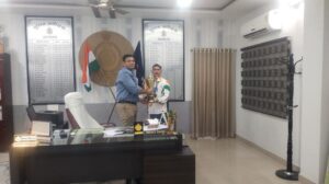 शीतलेश कुमार पटेल के वापस अपने यूनिट राजनांदगांव आने पर राजनांदगांव पुलिस एवं छत्तीसगढ़ पुलिस का मान बढ़ाने पर पुलिस अधीक्षक राजनांदगांव मोहित गर्ग द्वारा शीतेश पटेल को पुलिस अधीक्षक कार्यालय में सम्मानित किया साथ ही उनकी उज्जवल भविष्य की कामना करते हुये बधाई दी। इस अवसर पर पुलिस अधीक्षक कार्यालयीन स्टाफ उपस्थ्ति रहें।