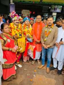 दिनांक 2 =सितंबर को मूर्ति को बाजागाजा के साथ श्रीमती प्रभा यादव के घर चंदखुरी लेकर जाना