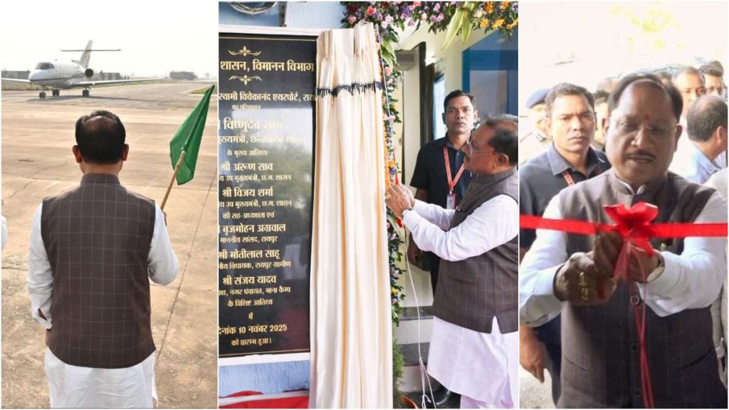 रायपुर। मुख्यमंत्री विष्णु देव साय ने आज स्वामी विवेकानंद विमानतल परिसर, माना कैम्प में स्थित स्टेट हैंगर के नियमित परिचालन का औपचारिक शुभारंभ किया। इस अवसर पर मुख्यमंत्री साय पहली उड़ान के माध्यम से गुजरात के लिए रवाना हुए।