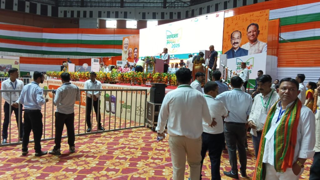 भानुप्रतापपुर। स्वच्छता सर्वेक्षण स्वच्छता संगम 2025 बहतराई इंडोर स्टेडियम बिलासपुर छत्तीसगढ़ प्रदेश स्तरीय कार्यक्रम के मुख्य अतिथि मुख्यमंत्री विष्णु देव साय एवं कार्यक्रम की अध्यक्षता उपमुख्यमंत्री नगरीय प्रशासन मंत्री अरुण साव की उपस्थिति में संपन्न हुआ।