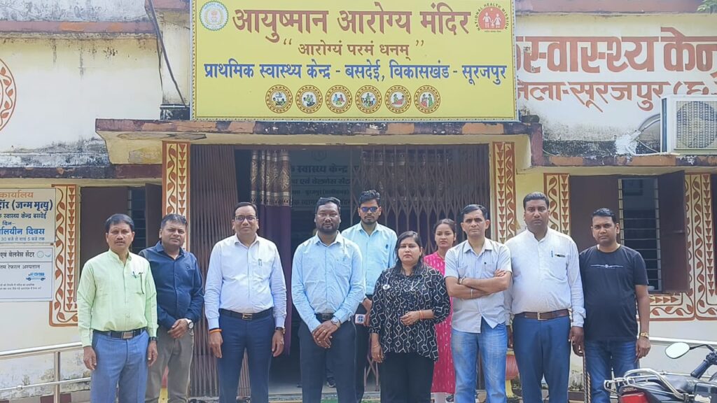 सूरजपुर। प्राथमिक स्वास्थ्य केंद्र (पीएचसी) बसदेई में मुख्य चिकित्सा एवं स्वास्थ्य अधिकारी (सीएमएचओ) डॉ. केडी पैकरा और खण्ड चिकित्सा अधिकारी (बीएमओ) अमित भगत ने औचक निरीक्षण किया। इस दौरान अस्पताल की स्वच्छता, कर्मचारियों की उपस्थिति, सभी रिपोर्टिंग और आयुष्मान भारत योजना के तहत मरीजों को मिल रही सुविधाओं की गहन जांच की गई। अधिकारियों ने पीएचसी की व्यवस्था को सराहनीय बताया।