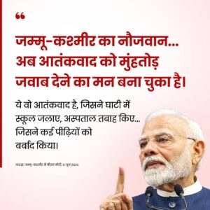 प्रधानमंत्री ने अपने संबोधन में कहा कि पाकिस्तान ने पहलगाम में इन्सानियत और कश्मीरियत, दोनों पर वार किया. उसका इरादा भारत में दंगे कराने का था, कश्मीर के मेहनतकश लोगों की कमाई रोकने का था,