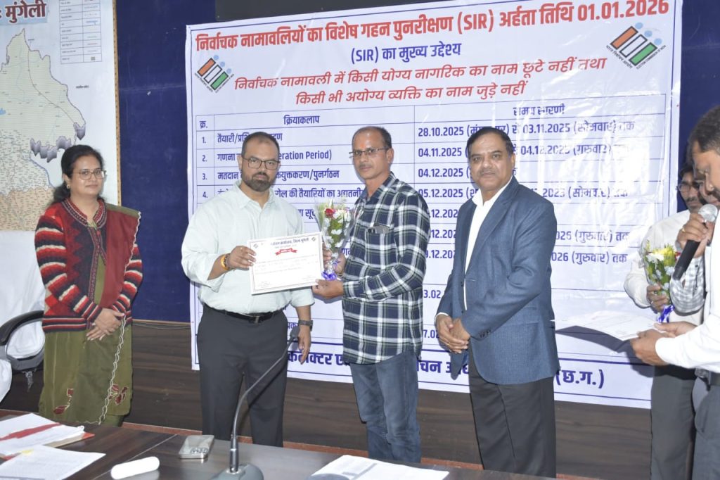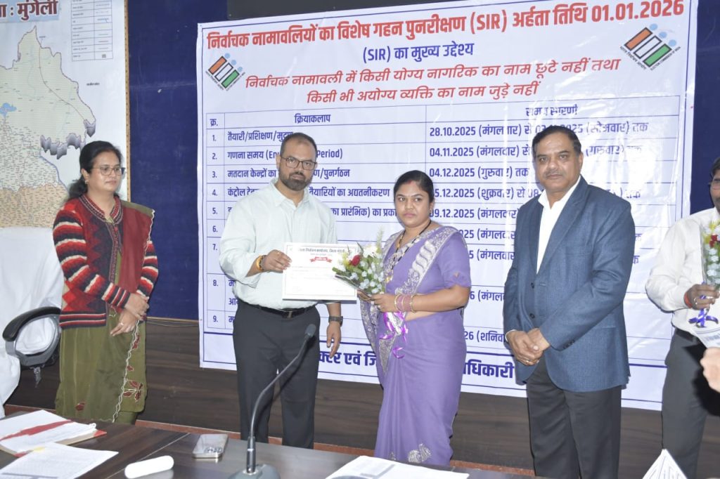 SIR अभियान में मुंगेली जिला नंबर-1, 100% डिजिटाइजेशन करने वाले 26 बीएलओ का कलेक्टर ने किया सम्मान