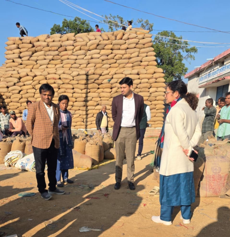 रजौली धान खरीदी केंद्र पहुंचीं। उन्होंने केंद्र का निरीक्षण कर खरीदी प्रक्रिया का परीक्षण किया।