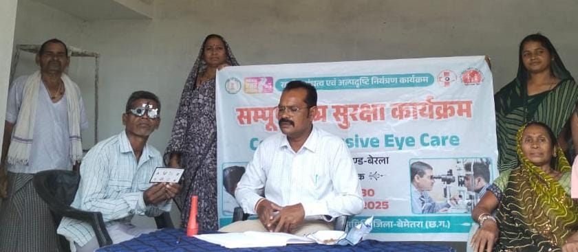 राज्य कार्यक्रम अधिकारी एवं मुख्य चिकित्सा एवं स्वास्थ्य अधिकारी के नेतृत्व में कार्ययोजना अनुसार विकासखण्ड बेरला में सम्पूर्ण नेत्र सुरक्षा कार्यक्रम आयोजित किया जा रहा है। जिला स्वास्थ्य एवं नोडल ने बताया कि यह सत्यापन का कार्य पूरे राज्य में आयोजित किया गया है। इस कार्यक्रम में घर-घर जाकर नेत्र रोग से पीड़ित सभी तरह के नेत्र सुरक्षा से संबंधित जानकारी ली जाएगी एवं हितग्राहियोें के सूची तैयार किया जाएगा, उसके पश्चात् मोतियाबिंद से पीड़ित व्यक्ति का उपचार के लिए जिला अस्पताल में भेजा जाएगा इसके साथ मोतियाबिंद के अलावा अन्य बीमारी से ग्रसित लोगों को सूचीबद्व कर राज्य कार्यालय को भेजा जाएगा,