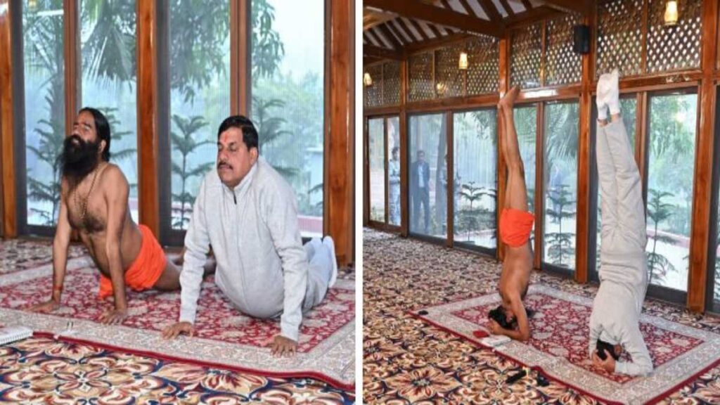मुख्यमंत्री डॉ. मोहन यादव और बाबा रामदेव की एक तस्वीर सामने आई है, जिसमें दोनों साथ-साथ शीर्षासन करते नजर आ रहे हैं। मुख्यमंत्री का यह रूप आमजन ने पहली बार देखा। योग विशेषज्ञों के अनुसार, शीर्षासन कोई सहज आसन नहीं है, जिसे बिना नियमित अभ्यास के किया जा सके। इससे यह स्पष्ट होता है कि डॉ. मोहन यादव लंबे समय से योग और आसनों का नियमित अभ्यास करते रहे हैं।