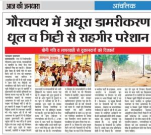 लगातार आमजनता ,व्यापारीगणों व व्यवसायिक बंधुओ द्वारा गौरव पथ निर्माण में लेट लतीफी व भ्रस्टाचार को लेकर लगातार आवाज उठती रही । कांग्रेस द्वारा उनके स्वयं के मार्गनिर्देशन में इसे मुद्दा बनाते हुवे विगत 28 जून 2024 को एक दिवसीय धरना प्रदर्शन कर विरोध किया गया था ।