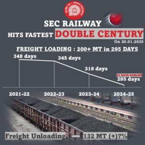 रायपुर – दक्षिण पूर्व मध्य रेलवे अपने समर्पित रेलकर्मियों के सम्मिलित प्रयासों से अपने सर्वाधिक लदान करने वाले जोन में से एक होने के खिताब एवं परंपरा को बरकरार रखने की ओर अग्रसर है । अपने ठोस इरादों की बदौलत दक्षिण पूर्व मध्य रेलवे ने देश के औद्योगिक विकास में योगदान देते हुए नवीन प्रबंधन प्रणाली से वर्तमान वित्तीय वर्ष 2024-25 के 01 अप्रैल’ 2024 से 20 जनवरी’ 2025 तक केवल 295 दिनों में 200 मिलियन टन लदान को पूरा किया है, जबकि पिछले वित्तीय वर्षों 2023-24 में 318 दिनों, वित्तीय वर्ष 2022-23 में 345 दिनों तथा वित्तीय वर्ष 2021-22 में 348 दिनों में यह उपलब्धि हासिल की थी । भारतीय रेलवे में 65% इंक्रीमेंटल लोडिंग की भागीदारी के साथ यह दक्षिण पूर्व मध्य रेलवे द्वारा यह अब तक का सर्वश्रेष्ठ प्रदर्शन है ।