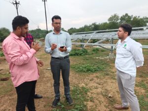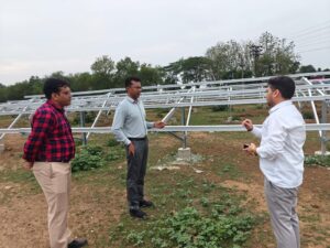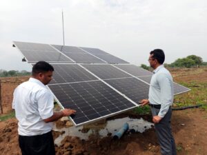 तत्पश्चात् श्री राणा द्वारा कसडोल विकासखण्ड के ग्राम बैंगन डबरी में सौर सुजला फेस-09 योजनांतर्गत इकाई मेसर्स राकेश इंटरप्राईजेस द्वारा स्थापित हितग्राही जमुना महिलांगे के यहॉ स्थापित 03 एच.पी. सबमर्सिबल सौर पम्प का निरीक्षण किया गया, हितग्राही द्वारा अवगत कराया गया कि उनके यहॉ स्थापित सौर संयंत्र स्थापना के बाद से अब तक यह सुचारू रूप से कार्यशील है। उनसे यह पुछे जाने पर कि इस सोलर पम्प में किसी प्रकार की समस्या आने पर आप क्या करोगे? इस हेमलाल द्वारा बताया गया कि मेरे द्वारा सौर समाधान एप्प डाउनलोड किया गया है, जिसकी मदद से मै सोलर पम्प में किसी भी प्रकार की समस्या आने पर अपनी शिकायत दर्ज कर सकता हूॅ। इस पर क्रेडा सी.ई.ओ. श्री राणा द्वारा वहॉ उपस्थित क्रेडा के अधिकारियों को सौर समाधान एप्प के अधिकाधिक प्रचार के निर्देश दिये।