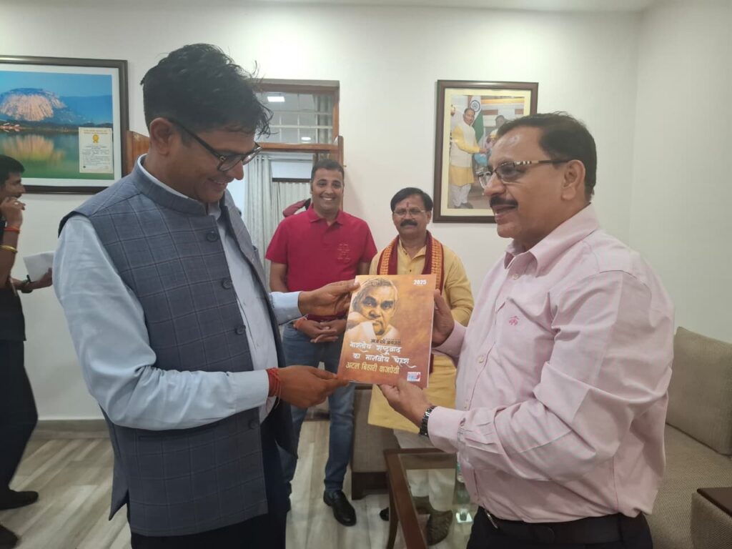 इस ऐतिहासिक अवसर को और भी गरिमामय बनाने के लिए, जनधारा समूह ने छत्तीसगढ़ के मुख्यमंत्री विष्णु देव साय जी से सौजन्य भेंट की और स्मारिका में उनके द्वारा अटल जी के विचार और संस्कृति पर लिखे लेख पर धन्यवाद ज्ञापित किया। इस हृदयस्पर्शी मुलाकात के दौरान, समूह ने उन्हें यह अनमोल स्मारिका भेंट की और उनके मार्गदर्शन व समर्थन के लिए हार्दिक आभार व्यक्त किया। मुख्यमंत्री जी ने इस स्मारिका को स्वीकार करते हुए, अटल जी के विचारों को संरक्षित करने के इस प्रयास की प्रशंसा की और जनधारा समूह की इस पहल को सार्थक बताया।