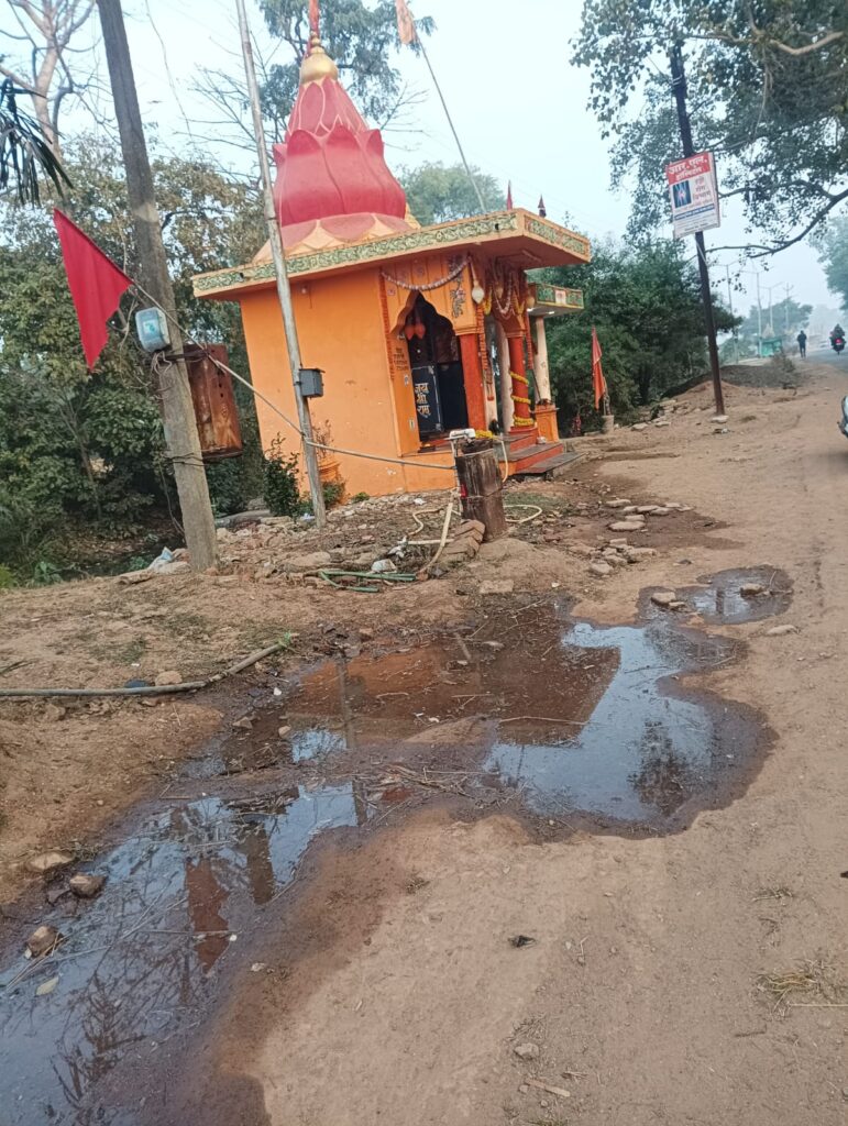 इस संबंध में मंदिर निर्माणकर्ता संजय प्रधान वी मंदिर के पुजारी रामकुमार महाराज ने बताया कि ठेकेदार द्वारा पहले धार्मिक कार्य होने के कारण पक्की फुटपाथ बना दिए जाने का आश्वासन दिया गया था व बुलडोजर से जमीन को समतल भी कर दिया गया था उसके बाद मना कर दिया गया । हमारे द्वारा इस निर्माण में प्रयुक्त होने वाले सभी सामग्रियों को निःशुल्क प्रदान किए जाने का प्रस्ताव भी दिया गया था कि आप अपने स्टाफ से इसे बनवा दीजिए किंतु ठेकेदार द्वारा वादाखिलाफी के दिए जाने के बाद अधूरा कार्य छोड़ दिए जाने से मंदिर प्रवेश वो कार्यक्रम आयोजित किए जाने की भारी परेशानियों का सामना करना पड़ रहा है ।