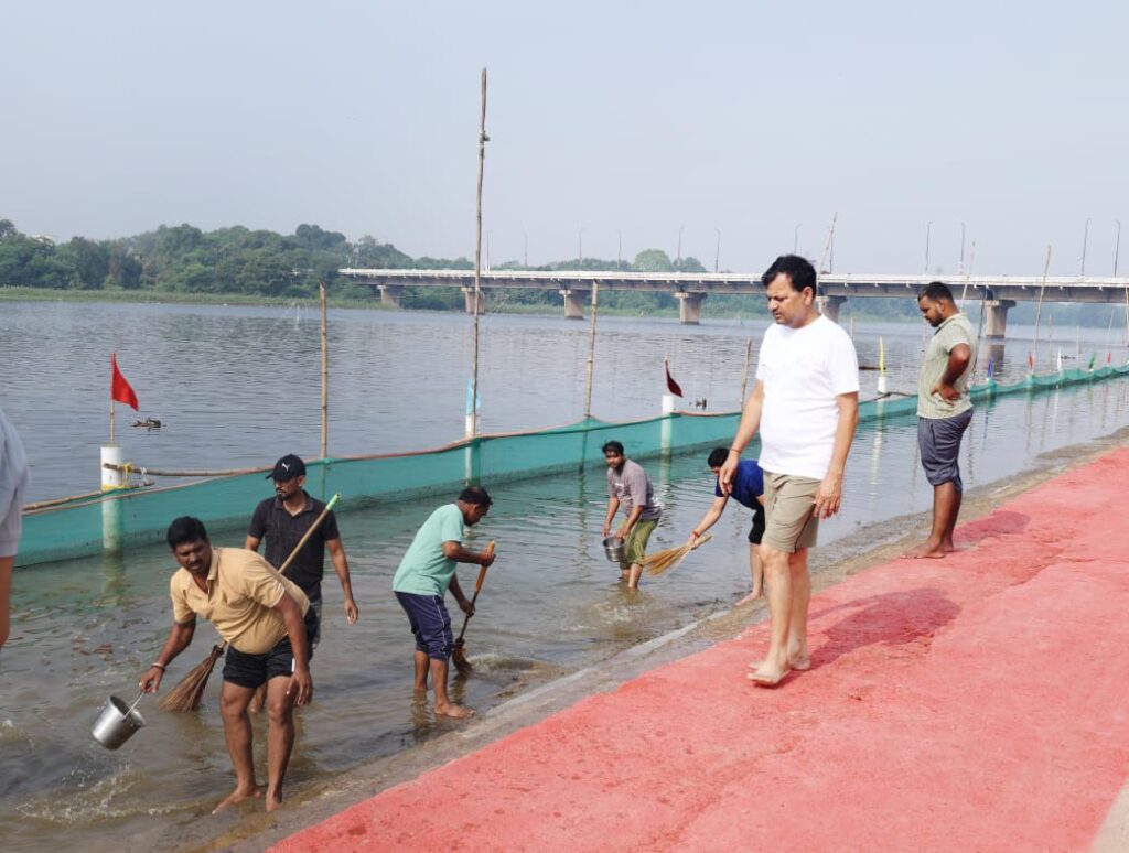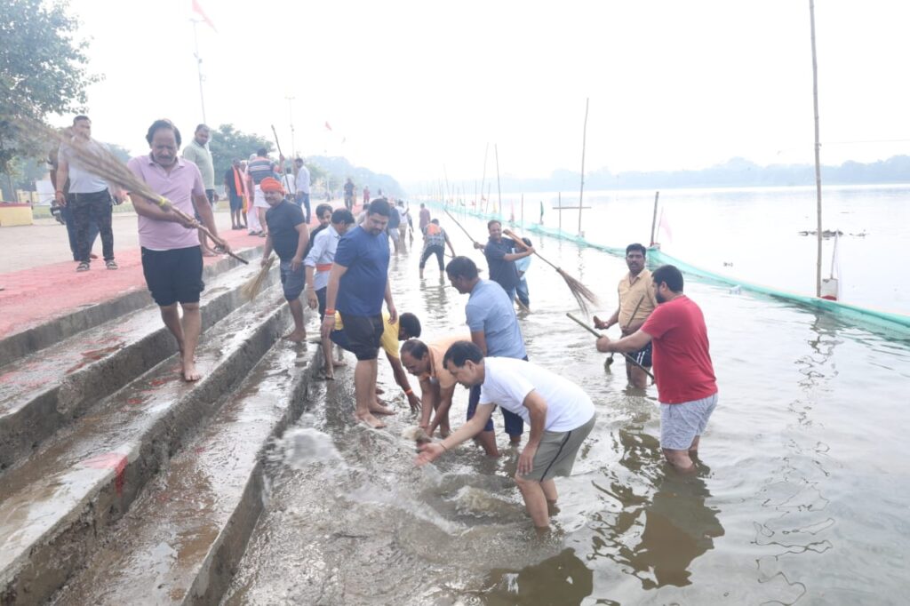 बड़ी संख्या में स्वयंसेवकों ने श्रमदान करके घाट की सफाई पूर्ण कर ली है।