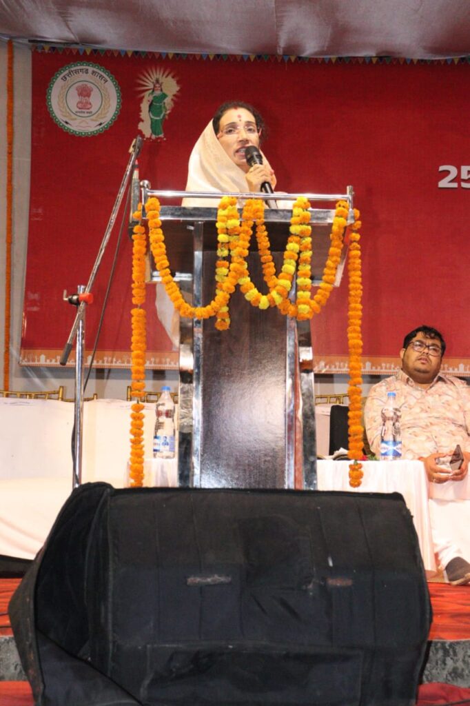सांसद श्रीमती कमलेश जांगड़े ने कार्यक्रम को संबोधित करते हुवे कहा की छत्तीसगढ़ को बने 25 साल हो गए है। राज्य निर्माण के बाद से हमारा छत्तीसगढ़ विकास की दिशा मे लगातार और तेजी से आगे बढ़ रहा है। उन्होंने बताया की 1 नवबर को देश के प्रधानमंत्री नरेंद्र मोदी की उपस्थित मे राजधानी रायपुर में राज्योत्सव कार्यक्रम का शुभारंभ किया गया है। उन्होंने कहा कि देश के प्रधानमंत्री और प्रदेश के मुख्यमंत्री के नेतृत्व में छत्तीसगढ़ प्रदेश लगातार विकास कर रहा है। उन्होंने कहा की हमारा प्रदेश तेजी से विकास की ओर अग्रसर हो रहा है इसके लिए उन्होंने सभी को बहुत बधाई दी। उन्होंने कहा कि हमारे राज्य सरकार द्वारा प्रदेश में जन-जन के कल्याण के लिए किसानों, युवाओं, महिलाओं, ग्रामीणों सहित सभी वर्ग के विकास के लिए अनेक जनकल्याणकारी योजनाओं के माध्यम से कार्य किया जा रहा है। उन्होंने समस्त जिलेवासियों को प्रदेश के 25वे स्थापना दिवस की बधाई दी।
