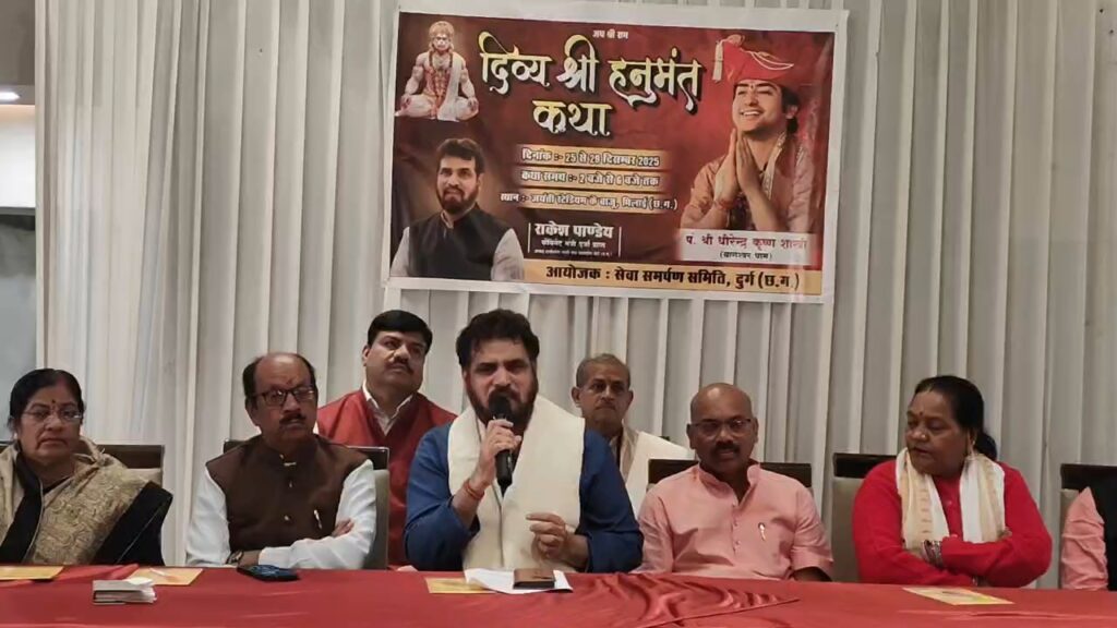 भिलाईनगर। भिलाई में पहली बार सनातन धर्म के ध्वजवाहक पंडित धीरेंद्र कृष्ण शास्त्री दिव्य श्री हनुमंत कथा सुनाएंगे. यह कथा 25 से 29 दिसंबर तक जयंती स्टेडियम के समीप ग्राउंड में पंडित शास्त्री प्रतिदिन दोपहर 2 बजे से शाम 6 बजे तक श्रद्धालुओं को कथा का रसपान कराएंगे.