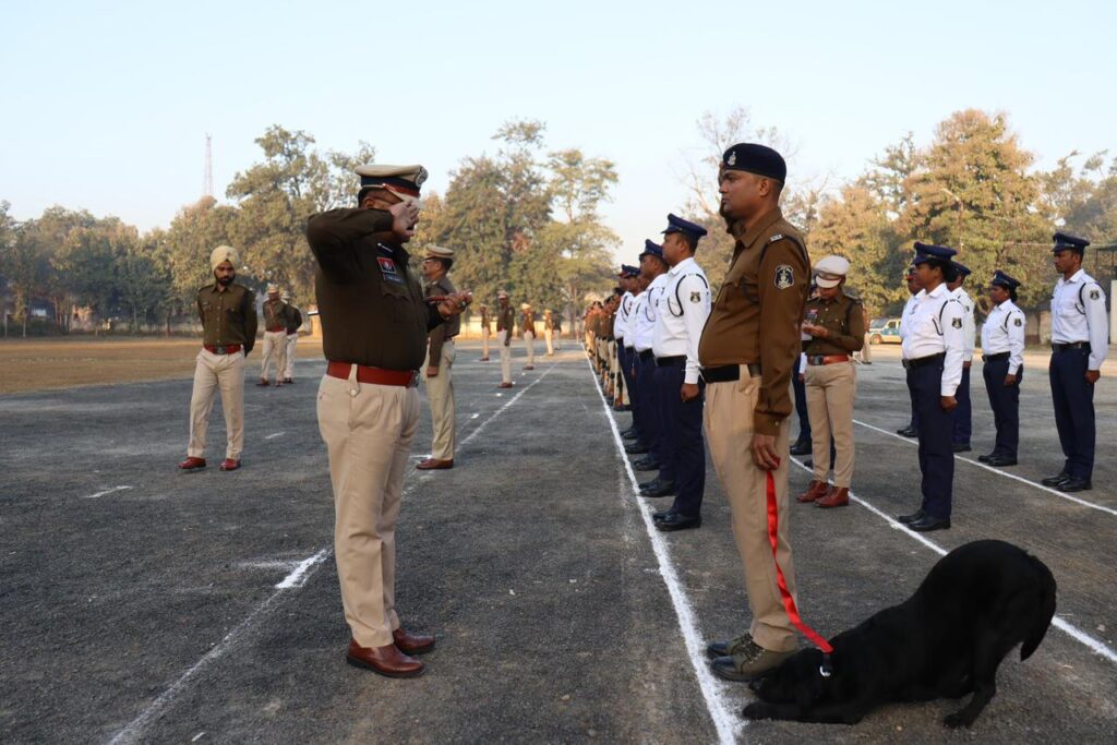 परेड के दौरान रक्षित निरीक्षक श्रीमती तृप्ति सिंह राजपूत, परेड कमांडर के रूप में उपस्थित रहीं और एसएसपी को परेड की सलामी दी।