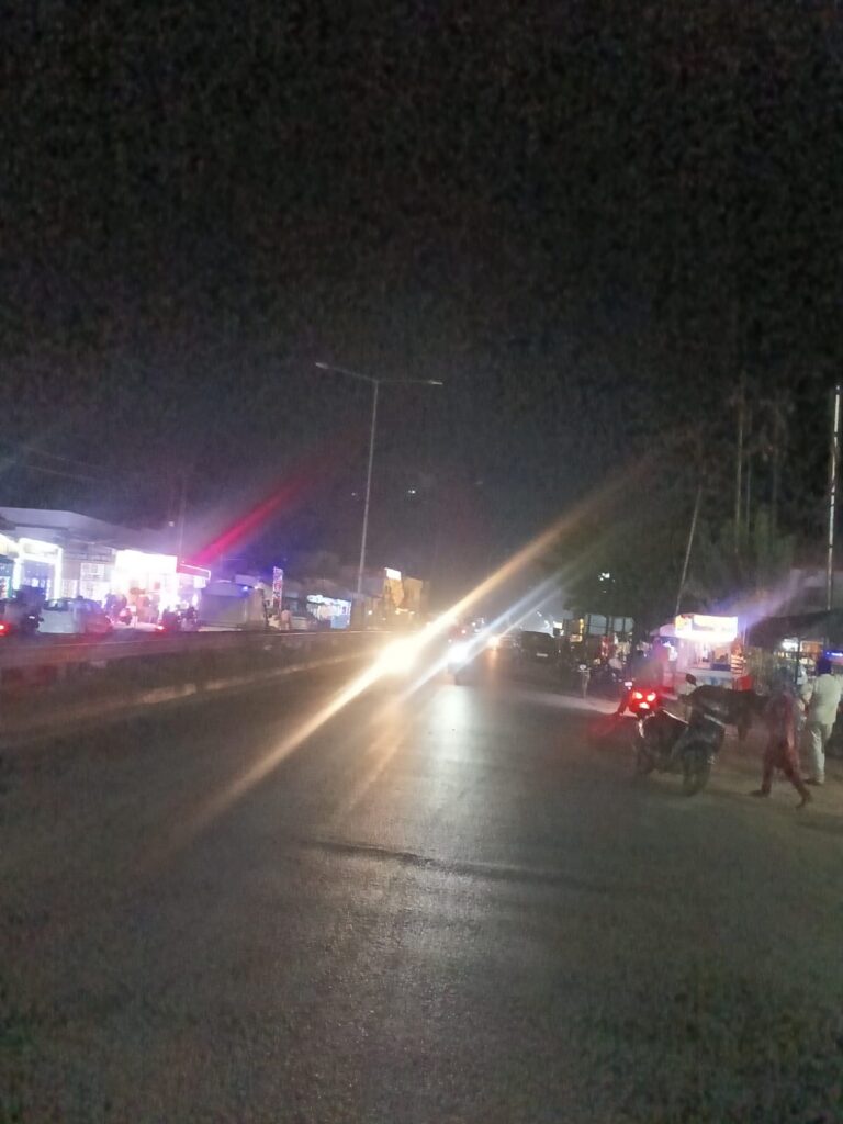 जिसके चलते अंधेरे मे’ हाईवे किनारे व्यापार कर रहे व्यापारियो को व्यापार करना पड रहा है। तो वही दीपावली खुशियो के इस पर्व में अंधेरा कही खलल न डाल दे।