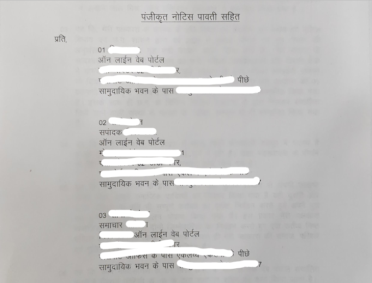 एक महिला पुलिस अधिकारी ने नोटिस भिजवाया है.