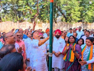 अम्बिकापुर । भारतीय जनता पार्टी के स्थापना दिवस पर आज प्रातः 9 बजे “संकल्प भवन” जिला कार्यालय में कार्यक्रम का आयोजन किया गया। इस अवसर पर भारत माता की जय व वंदे मातरम के उद्घोष के बीच भाजपा सरगुजा जिलाध्यक्ष भारत सिंह सिसोदिया ध्वजारोहण किये तथा पार्टी कार्यकर्ताओं को शुभकामनायें देते हुए कार्यक्रमों को सफल बनाने का आह्वान किया।