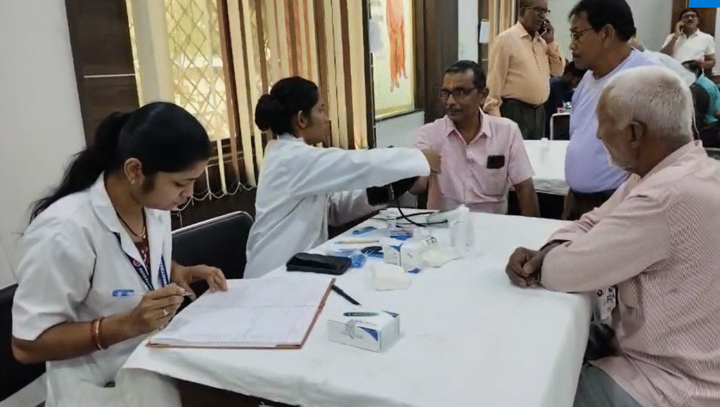रविवार को प्रार्थना भवन में सेवानिवृत्त कर्मचारियों के रक्तचाप, शुगर, हृदय, आंख, दांत सहित सामान्य बीमारियों की जांच की गई। जांच के पश्चात डॉक्टरों ने उपस्थित लोगों को आवश्यक परामर्श दिया और जरूरत के अनुसार दवाइयां भी वितरित कीं।