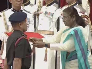 इस दौरान मेजर आशीष ढोंचक (सेना मेडल) और द सिख लाइट इन्फैंट्री 19 राष्ट्रीय राइफल्स सिपाही प्रदीप सिंह को मरणोपरांत शौर्य चक्र से सम्मानित किया गया। समारोह के दौरान दो बार राष्ट्रपति मुर्मू डाइस से नीचे उतरकर आईं। जब शहीद जवानों की मां और पत्नियां अवॉर्ड लेने पहुंचीं। राष्ट्रपति ने उन्हें गले लगाकर सांत्वना दी।