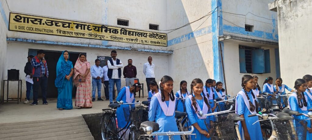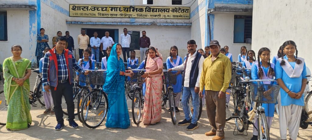 इसीलिए छत्तीसगढ़ सरकार ने बच्चों के आर्थिक और बहुत सारे समस्याओं को देखते हुए समस्त छात्रों को सरस्वती साइकिल योजना के अंतर्गत साइकिल प्रदान किया। और आपकी मांगो की अनुरूप हाई स्कूल भवन के लिए शिक्षा मंत्री से मांग किया गया है सीताराम मुन्ना चन्द्रा उपाध्यक्ष जनपद पंचायत जैजैपुर ने अपने उद्बोधन में कहा कि यहां के सरपँच लगातार विकास कार्यो की मांग करते रहते है और हमारे पास कोई राशि बजट नही मिला है जैसे ही बजट मिलेंगे जरूर आपके गांव में विकास कार्यों हेतु स्वीकृति दिया जाएगा वैसे भी लगातार आपकी गांव में विकास होगी कार्यक्रम में संस्था के प्राचार्य श्रीमती ज्योति चन्द्रा,श्रीमती अनुपमा टोप्पो, श्रीमती पूजा कोटाँगले, श्रीमती संगीता पैकरा,एस डी महंत,के आर उरांव,एस के मंडावी,वेदप्रकाश देवांगन,नरेंद्र सिदार क्लर्क आदि स्टाफ उपस्थित थे।