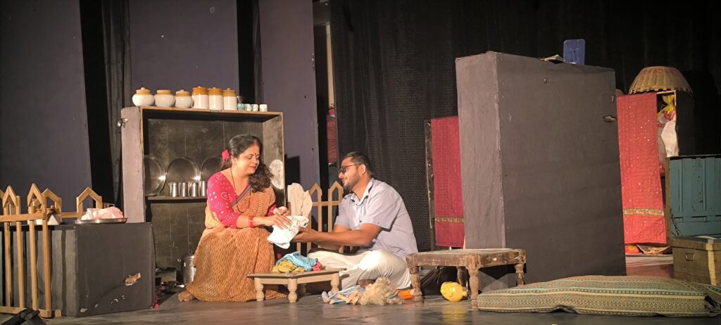 परिवार, पीढ़ियों के बीच बदलते मूल्य और संयुक्त परिवार के विघटन पर आधारित इस नाटक की प्रस्तुति मे गणेशी का किरदार अनुभव मोती, बाबू जी- पिंकु वर्मा, मां- रितु सेलोत, अमर- उमेश उपाध्याय, रामा-आदित्य देवांगन, छोटी बहन का किरदार ऋषिका दत्त ने अपने प्रभावशाली अभिनय से दर्शकों का दिल जीत लिया | साउंड और म्यूजिक प्रथम गुप्ता ने संभाला।