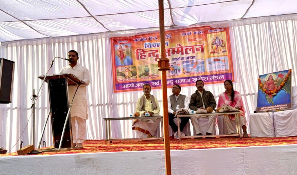 राष्ट्रीय स्वयंसेवक संघ के शताब्दी वर्ष पर खरोरा में हिन्दू सम्मेलन का हुआ आयोजन।