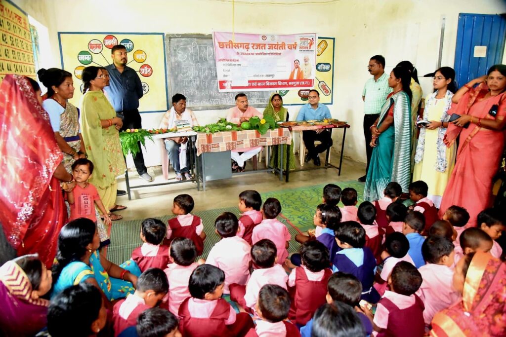 अम्बिकापुर: छत्तीसगढ़ राज्य निर्माण के 25 वर्ष पूरे होने पर मनाए जा रहे रजत जयंती महोत्सव के अवसर पर महिला एवं बाल विकास विभाग द्वारा सरगुजा जिले के सभी आंगनबाड़ी केन्द्रों में पोषण मेला का आयोजन किया गया। इस अवसर पर बड़ी संख्या में अभिभावक, महिलाएँ एवं ग्रामीण जन उपस्थित हुए।