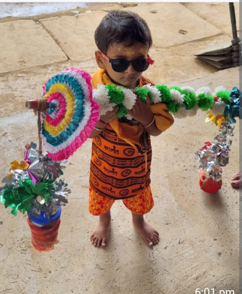 टॉवरपारा के वेद पाणिग्राही पिता चंदन पाणिग्राही की उम्र 2 वर्ष है । वह इतनी कम उम्र में घर के धार्मिक वातावरण व अपने दादा देवेंद्र पाणिग्राही के साथ ही इस उम्र में पूरी तरह सनातन धर्म को आत्मसात कर लिए है । वह अभी चारो सोमवार को 3 किलोमीटर पैदल कांवड़ में जल लेकर शिवमन्दिर में जलाभिषेक किया था ।