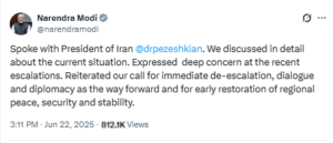 – तनाव कम करने पर जोर: PM मोदी ने तुरंत तनाव कम करने, संवाद और कूटनीति को आगे बढ़ाने की आवश्यकता रेखांकित की।